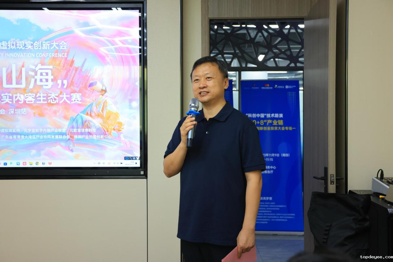 深圳市企业服务集团商业中心运营总监、粤港澳大湾区产业协同发展联合会新商业联盟(筹备)执行秘书长万善仕在致辞中重点介绍了粤港澳大湾区产业协同发展联合会新商业联盟的成立背景,并强调其推动VR技术与消费场景结合的实践。他提到,尽管联盟成立较晚,但其独特的平台定位已聚集了湾区内各行业的顶尖企业,致力于推动全国行业间的协同合作与创新。